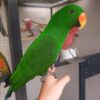 Hand-fed, tamed, and vaccinated female Eclectus Parrots