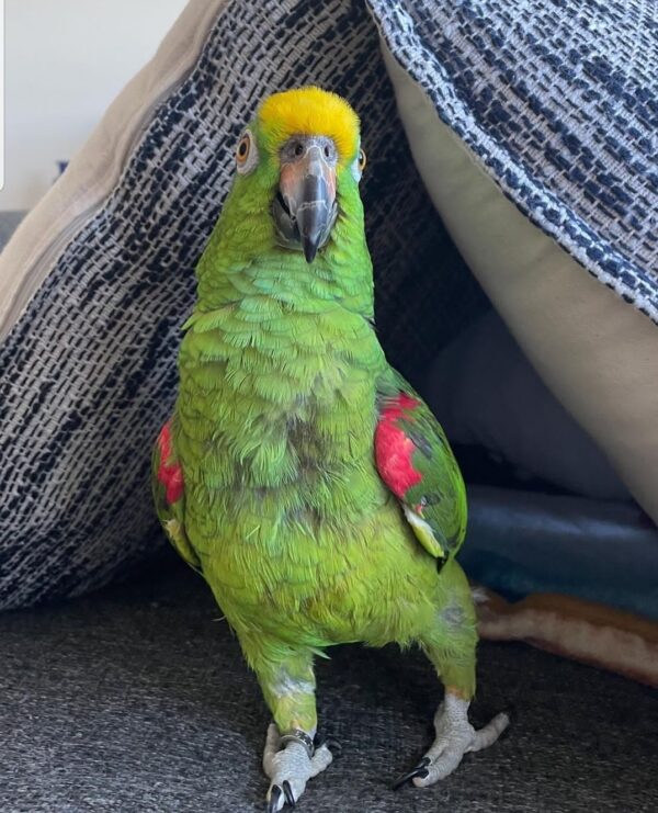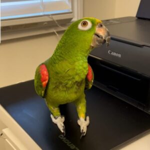 Raised in a nurturing environment, Bunny has been well-socialized from a young age. He enjoys mimicking sounds, talking, and engaging in playful activities. Amazon Parrots like Bunny are intelligent and affectionate birds that flourish with consistent care, mental stimulation, and love.